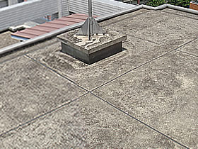 左写真のような突起物を建物屋上でよく見かけます。これは何か?というと、「脱気筒」と言って、防水の絶縁工法(ウレタン防水は通気緩衝工法)には必ず設置するエアー抜きです。コンクリート下地の場合、コンクリート内部には見えない部分で常に水が溜まっている状態であり、この場合に絶縁工法(通気緩衝工法)以外の工法で防水工事をすると、今までコンクリートの中に浸透していた水分や蒸気の逃げ場がなくなり、真夏には今まで溜まってた水分が太陽により熱せられ蒸気となり上に逃げようとし、防水に膨れが発生します。最近の防水改修工事では、この工法での施工が多いです。